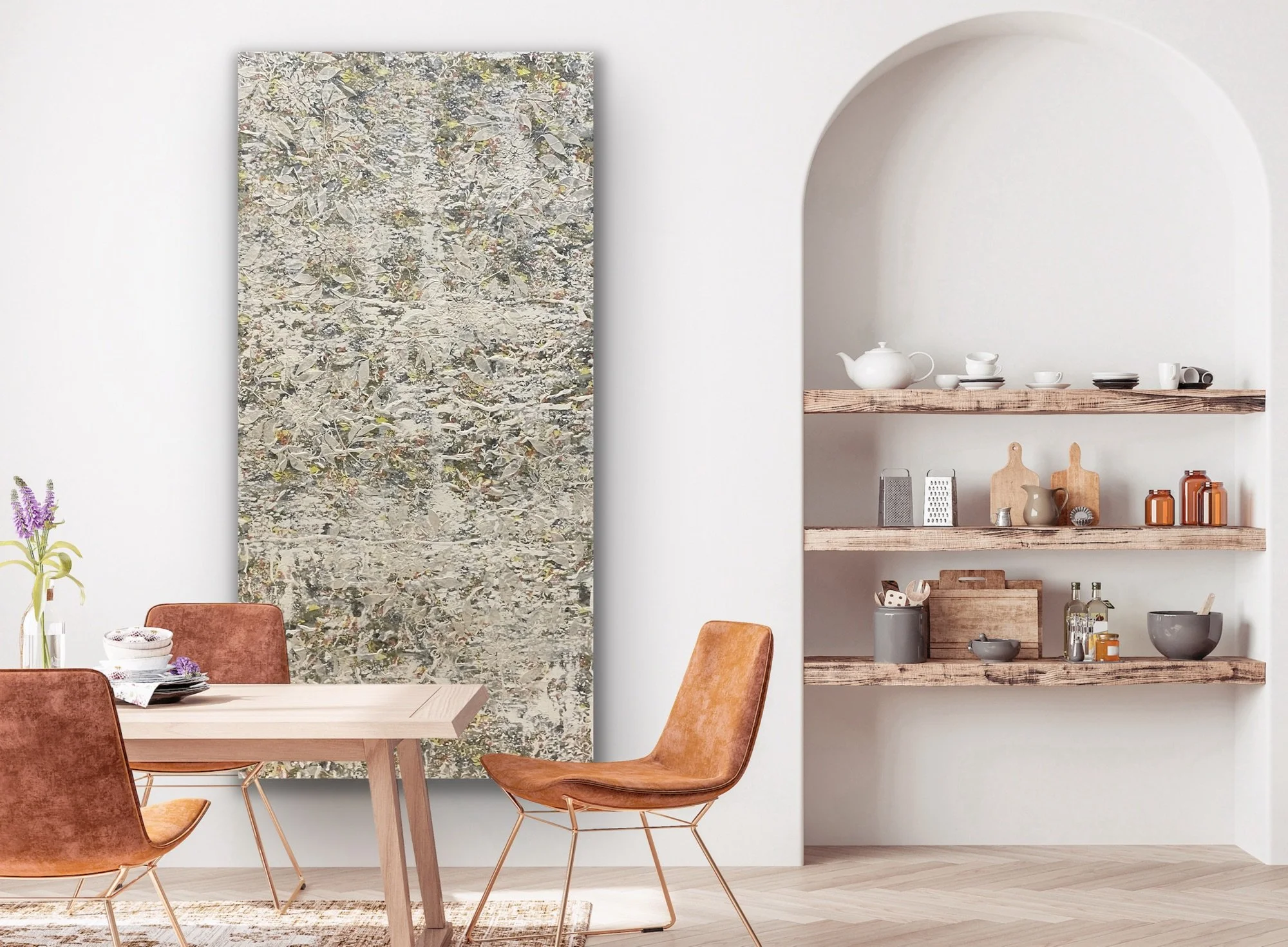Acrylic, ink and washi papers on gallery wrapped canvas with a satin finish. Black 1.5” profile edge.