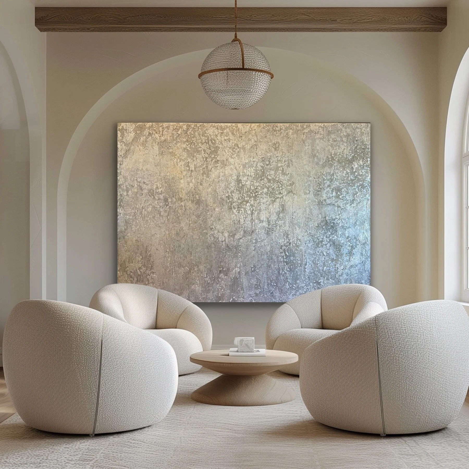Acrylic, ink, washi paper and crushed minerals on highly textured wood panel with a satin archival finish.