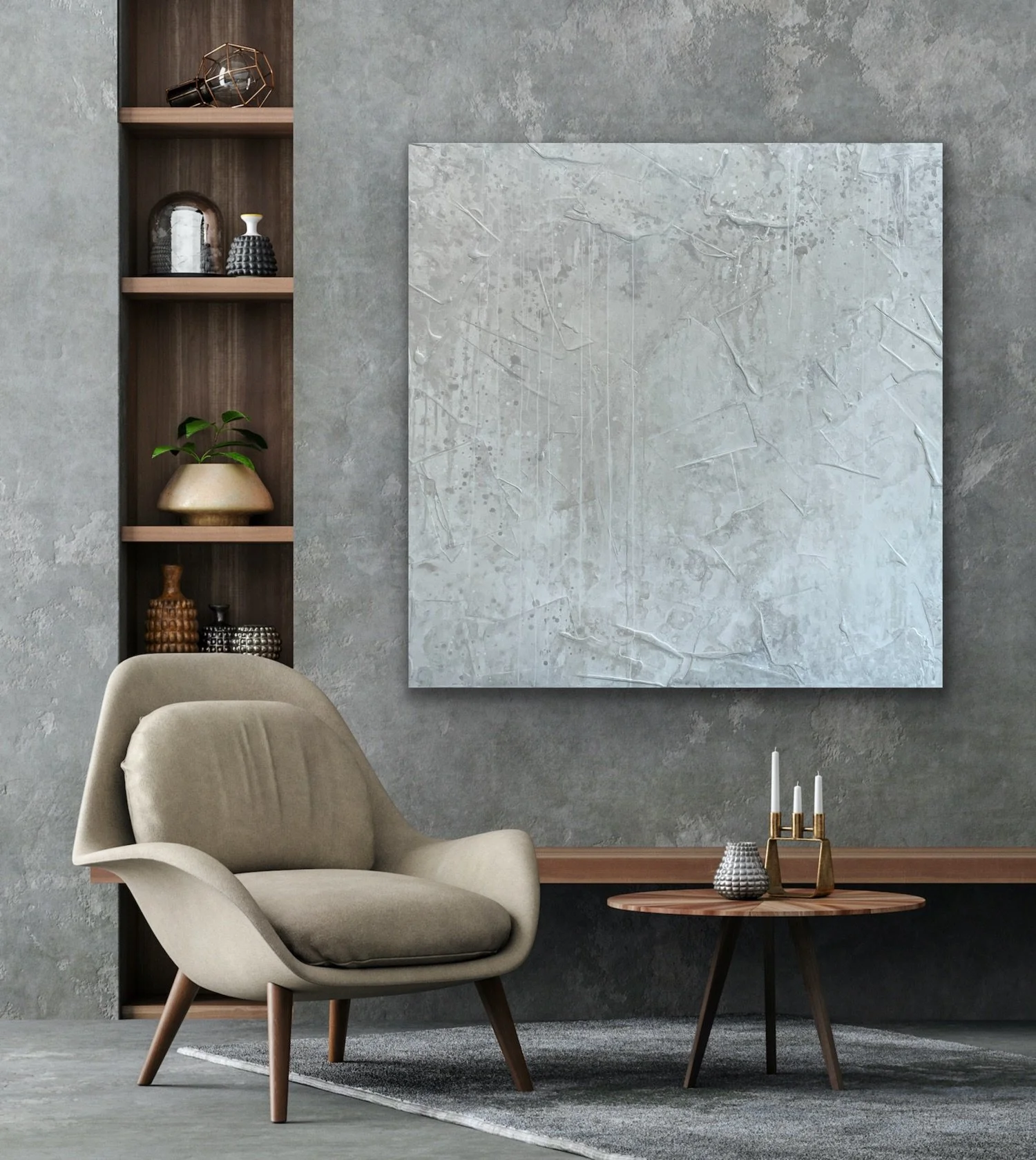Acrylic and ink on highly textured wood panel with a satin archival finish. White 2.5" profile edge.